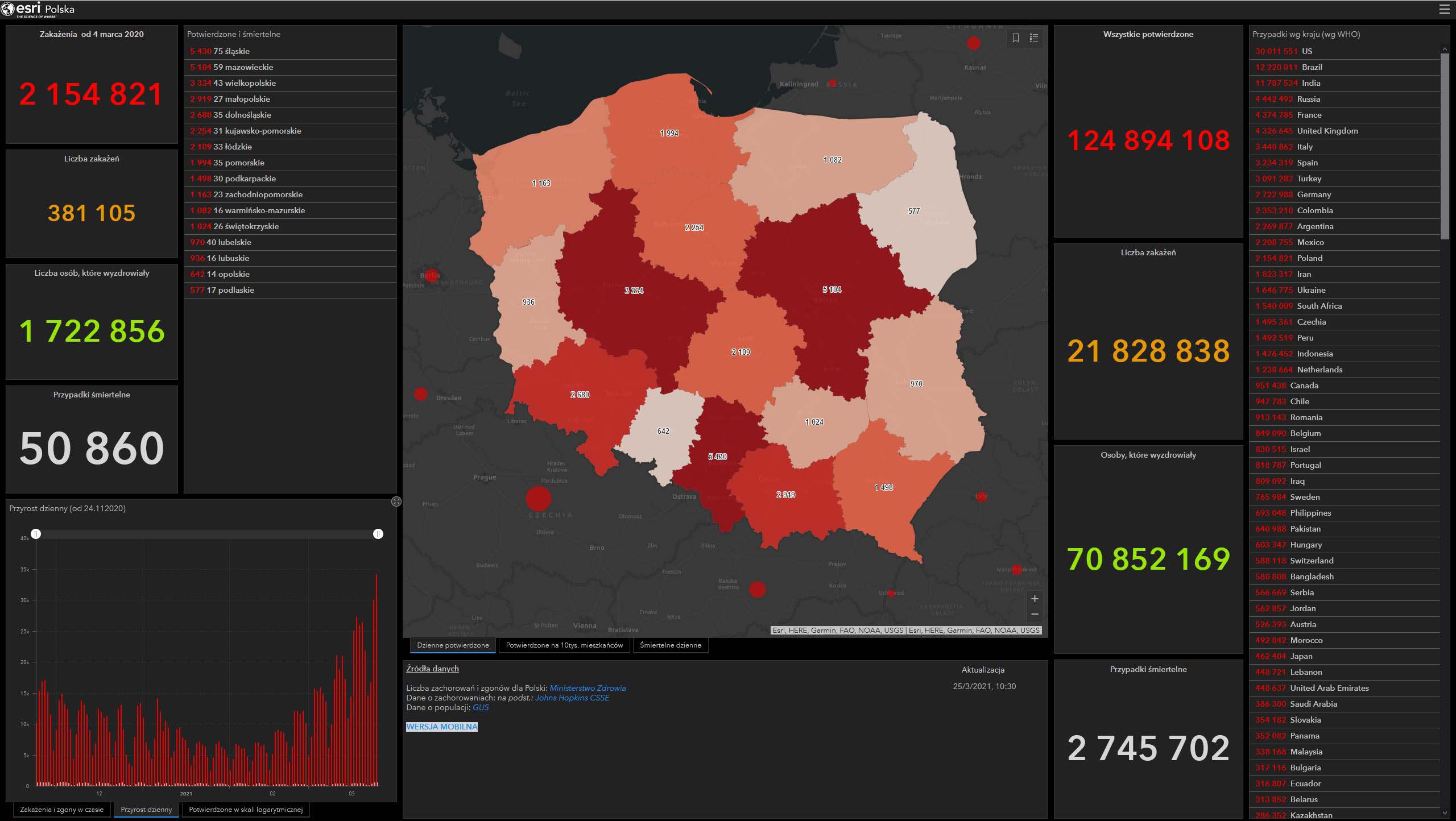 Dane są prezentowane od 27 grudnia 2020 do północy dnia poprzedzającego dzień publikacji. Dane pochodzą z platformy P1 obsługiwanej przez Centrum e-zdrowia oraz systemów Agencji Rezerw Materiałowych.