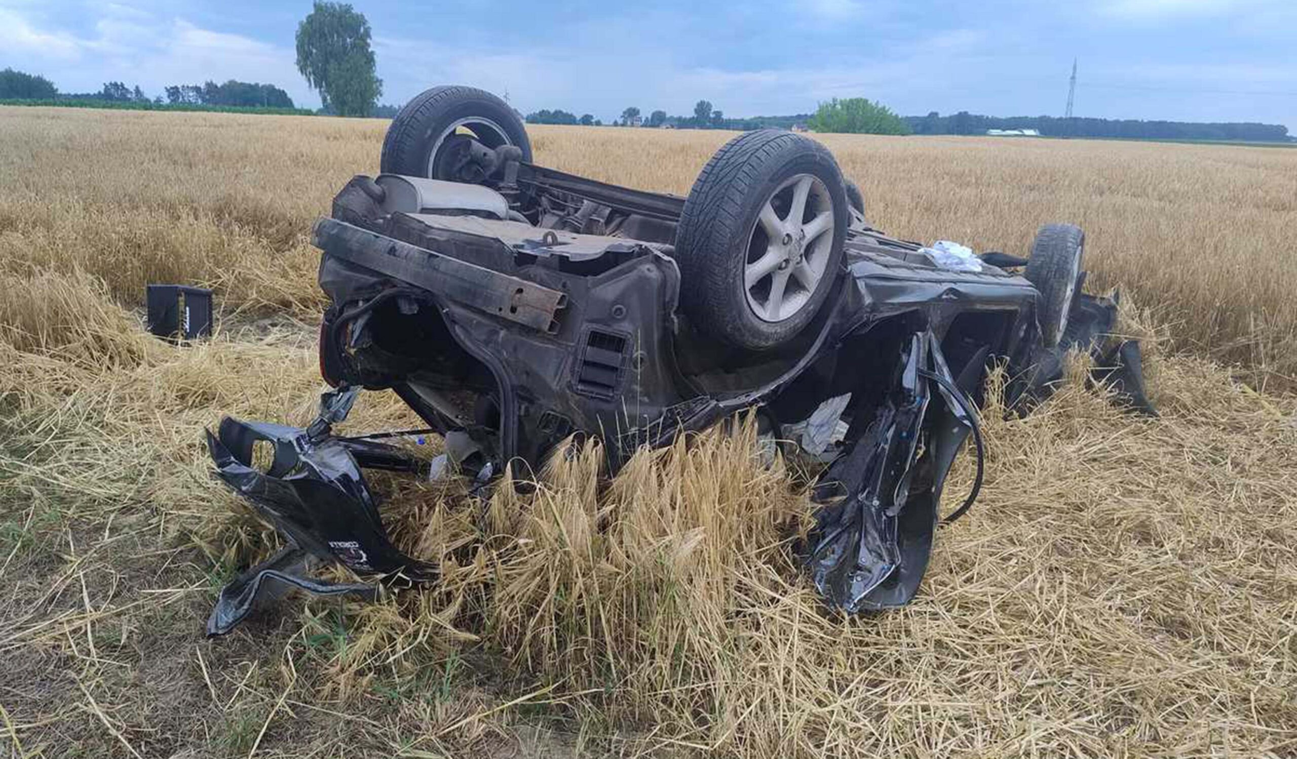 Zderzenie trzech samochodów na DK50. Jedno z aut dachowało.