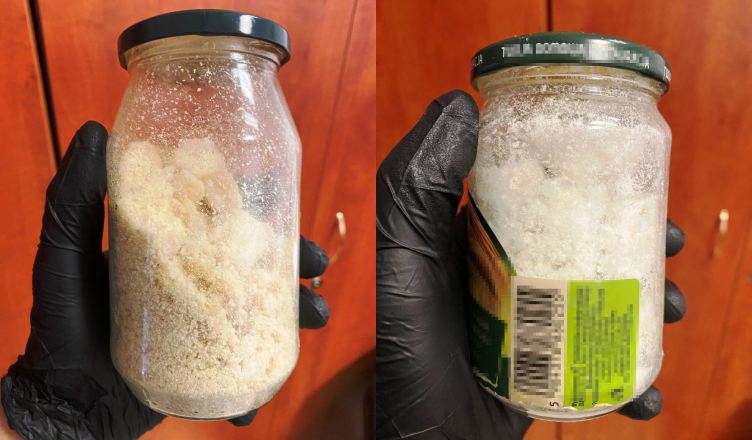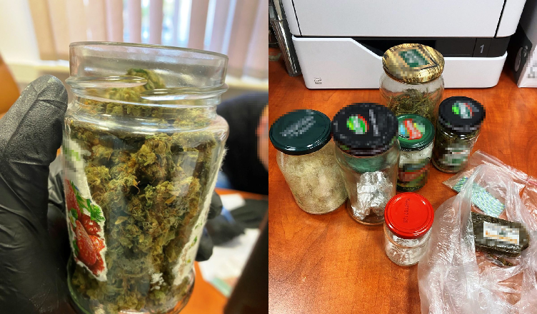 W pokoju zajmowanym przez jej brata kryminalni ujawnili znacznie więcej narkotyków. Były one schowane w słoikach i foliowych woreczkach. Wśród nich był susz roślinny, biały i brązowy proszek, papierowe listki i kilkaset kolorowych tabletek. Dodatkowo kryminalni zabezpieczyli telefon należący do mężczyzny i prawie 3 tys. złotych.