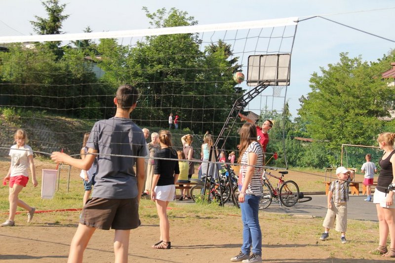 W przyparafialnej Auli Kardynała Stefana Wyszyńskiego można było poczęstować się ciastem, wypić kawę, porozmawiać. Wolontariusze przygotowali nawet z tej okazji przedstawienie ? ?Baśń o Królewnie Śnieżce?. Konkursy sportowe odbyły się pod czujnym okiem trenerów. Pogoda dopisała i nikt nie narzekał na brak rozrywki i nudę. Piknik odbywał się tuż przed meczem Polski z Czechami, więc nastroje uczestników pikniku były bojowe. Biało-czerwone koszulki i namalowane na twarzach flagi świadczyły o tym, że liczyliśmy na zwycięstwo lub chociaż wyjście z grupy. Rodzinny piknik był częścią większego projektu realizowanego przez Trampolinę Wołomin przy pomocy finansowej ze strony Starostwa Powiatowego w Wołominie.