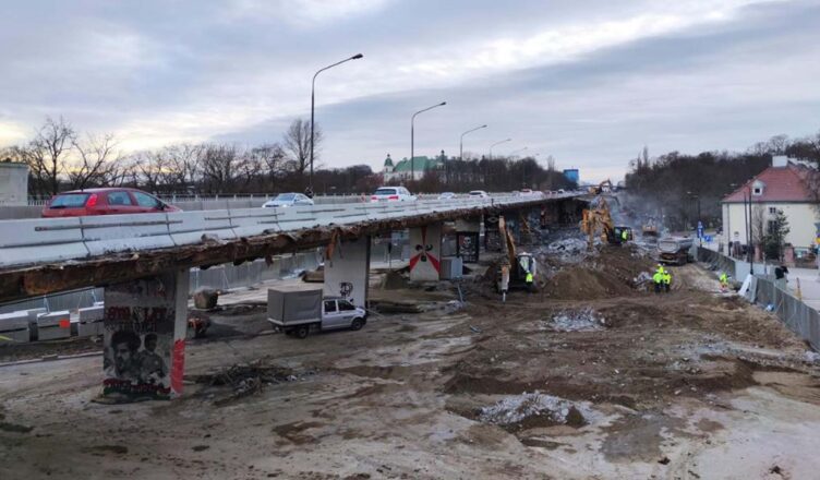 Wykonawca przebudowy wiaduktów Trasy Łazienkowskiej zakończył rozbiórkę fragmentu konstrukcji nad rondem S. Sedlaczka. Wyłączona z ruchu pozostaje zachodnia strona ronda, gdzie będzie trwała rozbiórka podpór, a następnie rozpocznie się budowa nowego wiaduktu.