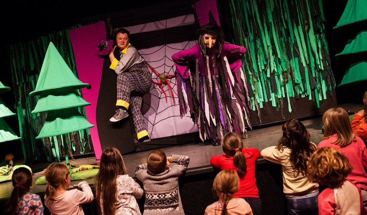 To już piąty rok dobrze znanego i lubianego cyklu Teatralna 13. Jest to propozycja dla najmłodszych mieszkańców gminy na spotkanie z teatrem w niedzielne popołudnia. Na scenie wołomińskiego MDK gościliśmy aktorów Agencji Artystycznej ?Bajlandia? z Warszawy w spektaklu ?Gafy czarownicy Fafy?. Była to wesoła, dynamiczna i pełna zawadiackich zwrotów akcji opowieść o dwóch chłopcach: rezolutnym Kubusiu oraz urwisie- Ancymonie, na których drodze pojawia się czarownica Fafa lubiąca płatać figle. Kolorowe scenografie oraz świetna muzyka wprowadziły dzieci w świat fantazji, mogli poczuć się jakby faktycznie byli w zaczarowanym lesie razem z bohaterami.