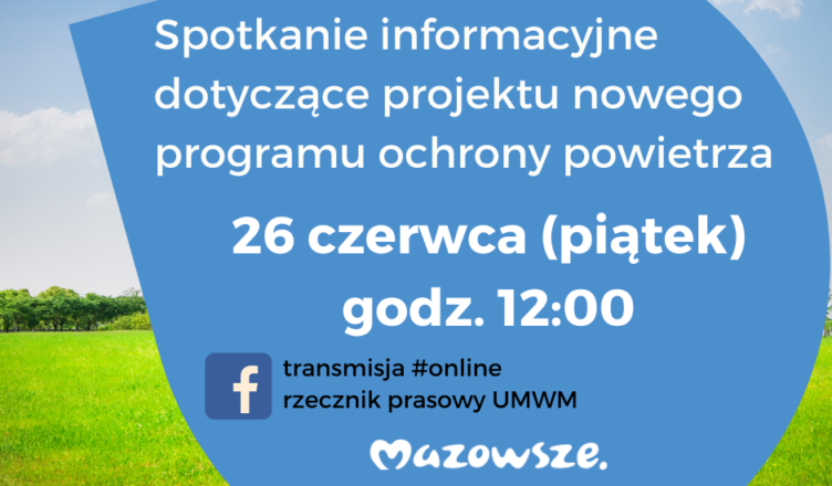Zdalne spotkanie informacyjne odbędzie się na facebookowym profilu rzecznika prasowego urzędu marszałkowskiego już w najbliższy piątek, 26 czerwca, od godz. 12:00. Pytania można przesyłać wcześniej na adres powietrze@mazovia.pl.
