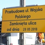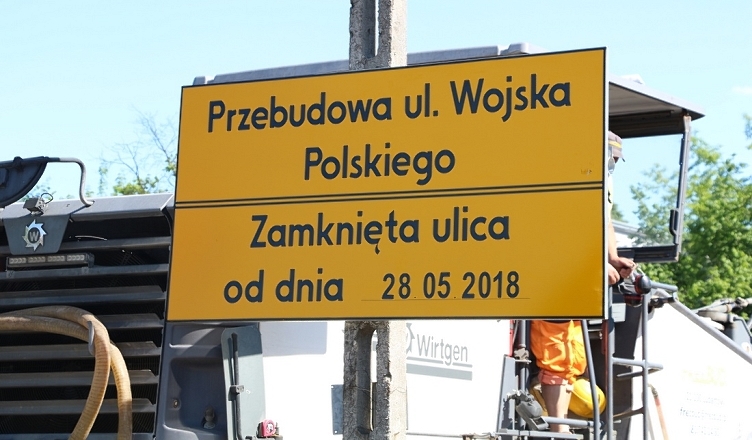 W poniedziałek 28 maja 2018 r. zamknięta została dla ruchu ulica Wojska Polskiego na odcinku od Prymasa Wyszyńskiego do bocznicy kolejowej. Rozpoczęły się prace remontowe, które potrwają do końca sierpnia br. Koszt prac to 1,1 mln zł.