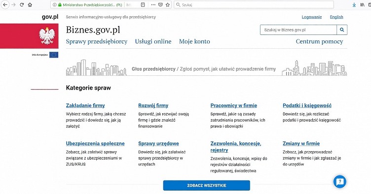 Ministerstwo Przedsiębiorczości i Technologii zachęca przedsiębiorców do korzystania z witryny www.biznes.gv.pl