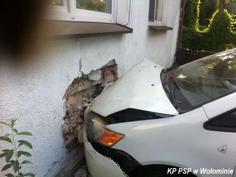 Około godziny 17:10 do Stanowiska Kierowania Komendanta Powiatowego PSP w Wołominie wpłynęło zgłoszenie o wypadku w Kobyłce, ze zgłoszenia wynikało że samochód osobowy wjechał w budynek. Po dojeździe na miejsce strażaków z JRG Wołomin potwierdziły się uzyskane informację. Strażacy z JRG Wołomin udzielili kwalifikowanej pierwszej pomocy poszkodowanej kobiecie. W związku z uszkodzeniami budynku Powiatowy Inspektor Nadzoru Budowlanego wyłączył z użytkowania część budynku mieszkalnego.