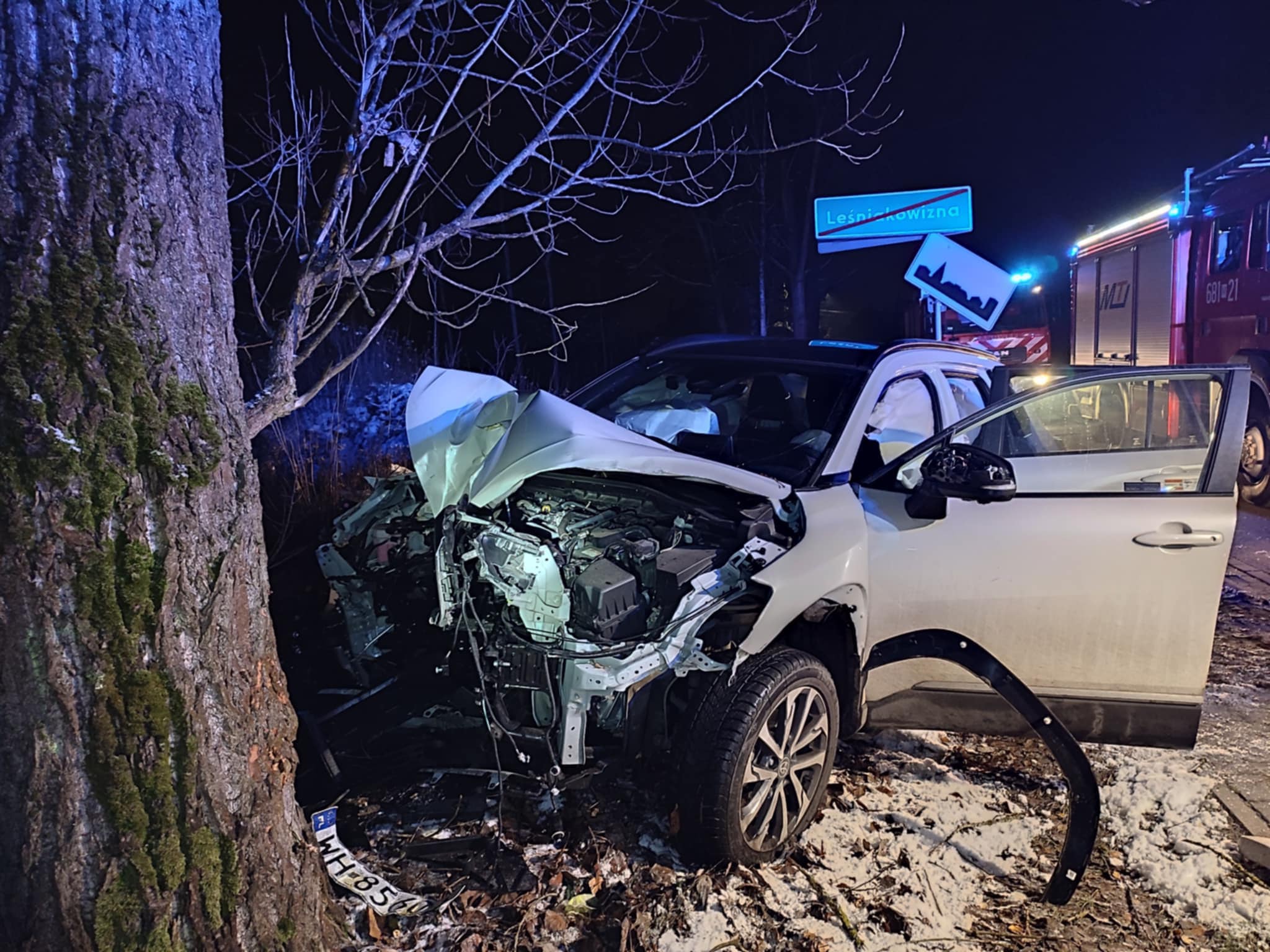 Wieczór w Leśniakowiźnie na długo pozostanie w pamięci służb ratunkowyc. Kierowca osobowej Toyoty stracił panowanie nad pojazdem i uderzył w drzewo. Na miejsce natychmiast wezwano zastępy strażaków z JRG Wołomin oraz OSP Ossów, którzy podjęli szybkie działania ratownicze.