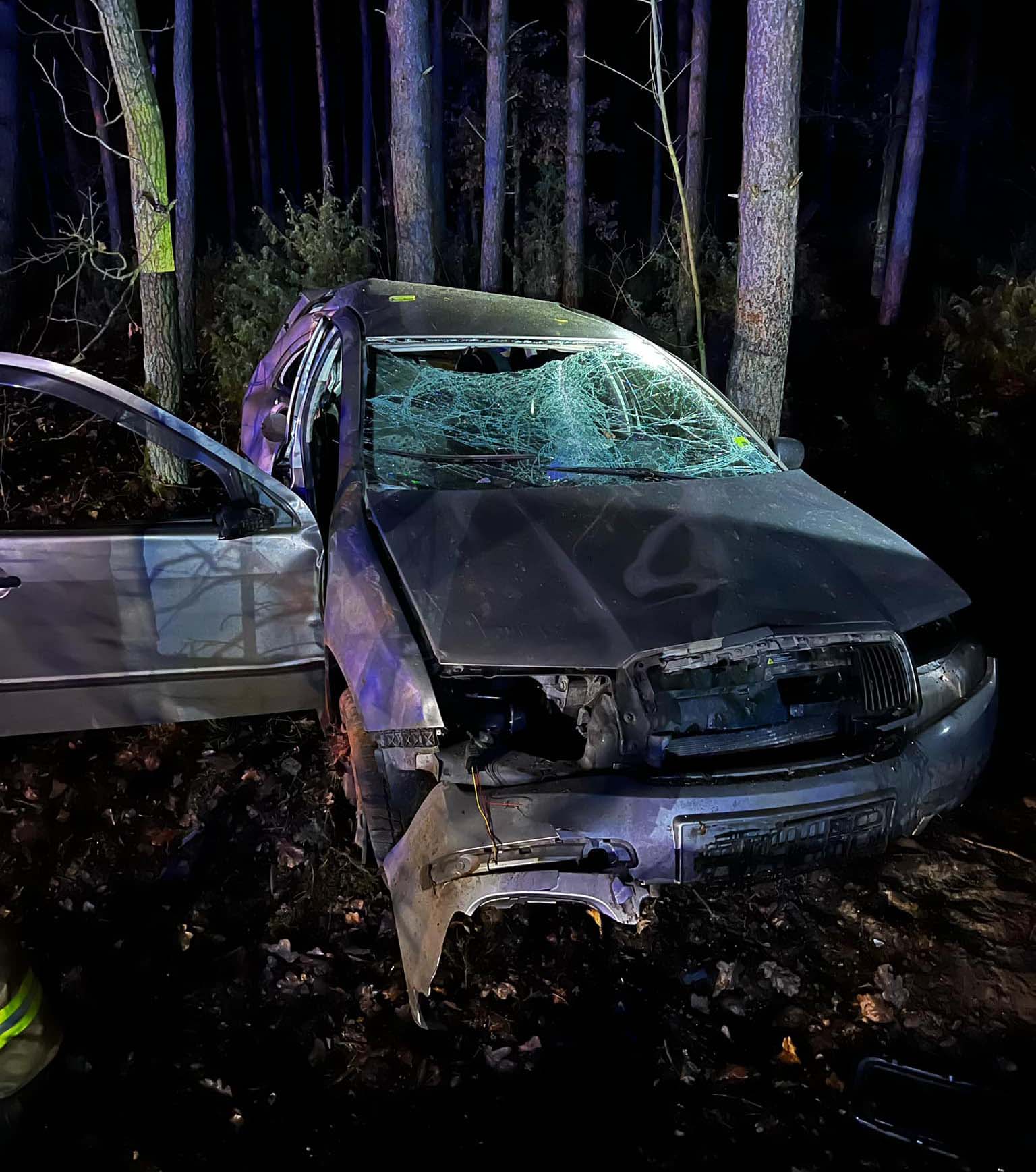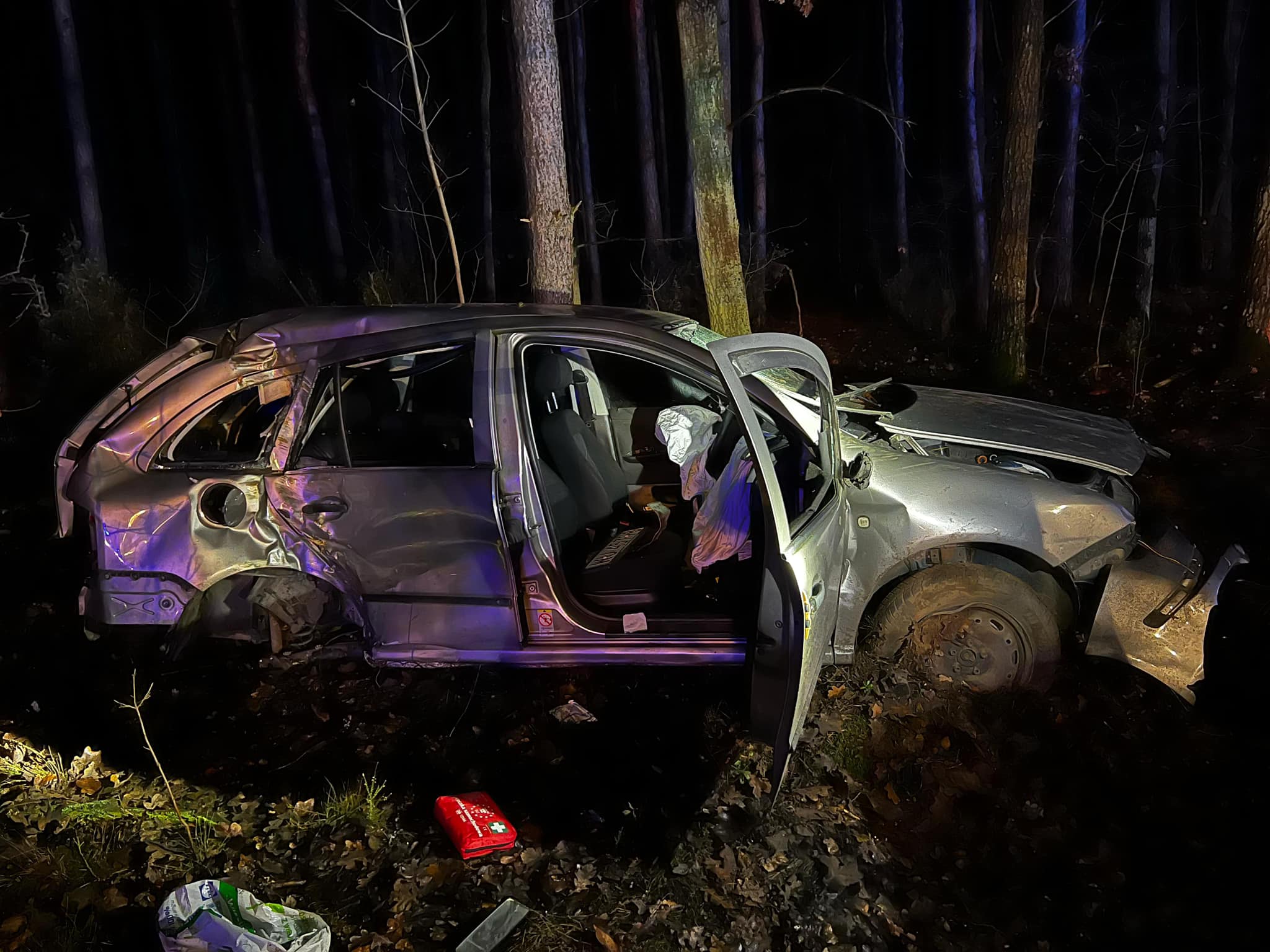 Uczestnik nocnego wypadku znalazł się daleko w lesie, co może wskazywać na nadmierną prędkość.