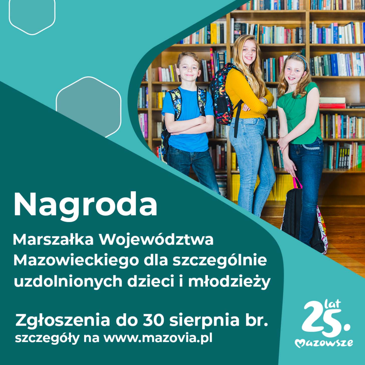Szczegółowe informacje dotyczące Nagrody Marszałka Województwa Mazowieckiego dla dzieci i młodzieży szczególnie uzdolnionych można uzyskać pod nr tel. 22 59 79 439 oraz 22 59 79 426. Regulamin i wniosek są dostępne na stronie: https://mazovia.pl/pl/bip/komunikaty/nagrody-marszalka-wojewodztwa-mazowieckiego-dla-dzieci-i-mlodziezy-szczegolnie-uzdolnionych.html.