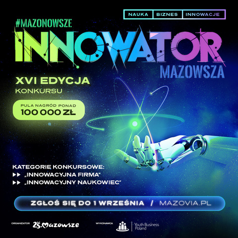 Jesteś naukowcem lub przedsiębiorcą? Twój biznes lub projekt jest innowacyjny i wspiera rozwój regionu? Weź udział w konkursie „Innowator Mazowsza”, w którym samorząd województwa nagrodzi najbardziej nowatorskie pomysły. Warto się zgłosić, bo pula nagród to prawie 120 tys. zł. Na zgłoszenia czekamy do 1 września.