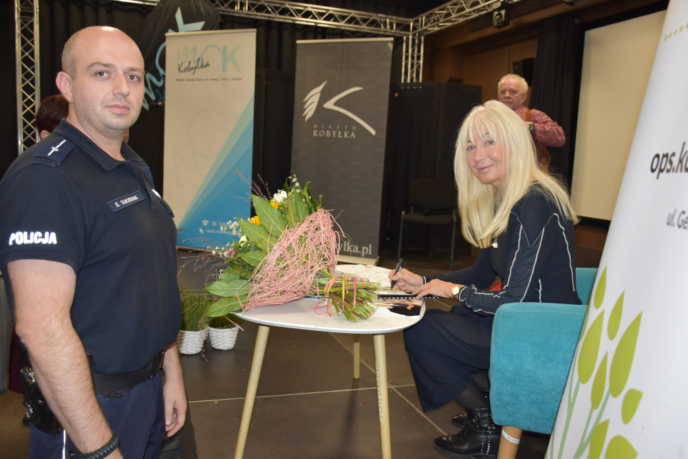 W Miejskim Ośrodku Kultury w Kobyłce odbyło się spotkanie ze znaną z paradokumentu ,,Sędzią Anną Marią Wesołowską”. Na prelekcje przybyli goście zainteresowani tematem odpowiedzialności prawnej nieletnich za popełnione czyny karalne. Wśród uczestników spotkania byli również funkcjonariusze z Komisariatu Policji w Kobyłce oraz Komendy Powiatowej Policji w Wołominie.