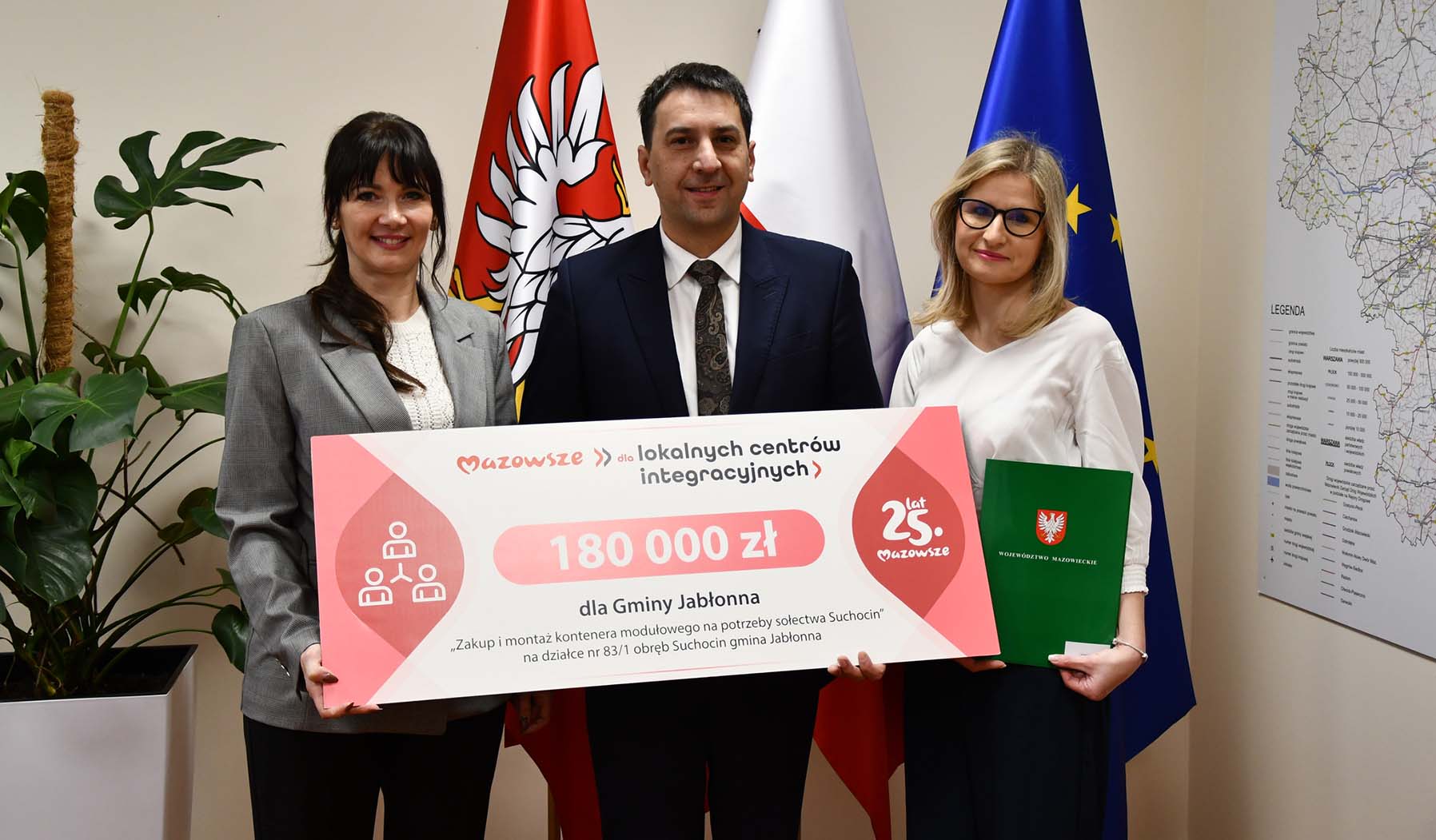 Sejmik Mazowsza przyznał gminie Jabłonna 180 tys. zł na zakup i montaż modułowego kontenera. Obiekt o powierzchni ok 70 mkw. będzie służył mieszkańcom wsi Suchocin jako lokalne centrum integracyjne. Dotacja pochodzi z programu „Mazowsze dla lokalnych centrów integracyjnych”.