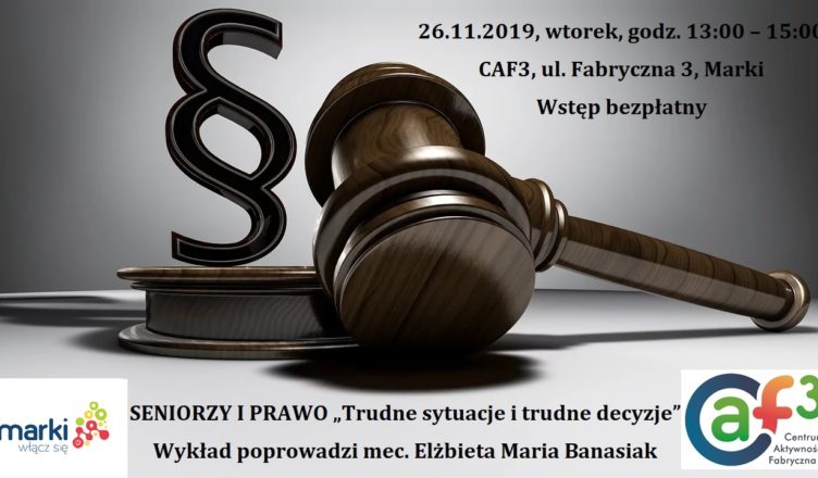 Interesujący  wykład w mareckim CAF3 – głównie dla seniorów, ale nie tylko. Będzie mowa o m.in. darowiznach i współwłasnościach nieruchomości, alimentach dla rodziców i dziadków, ubezwłasnowolnieniu.