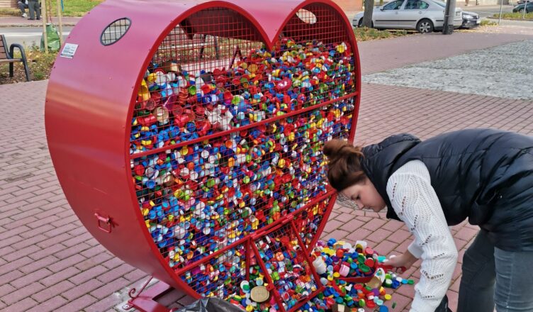 - 9 worków wypełniły nakrętki z kosza pod Urzędem Miejskim.