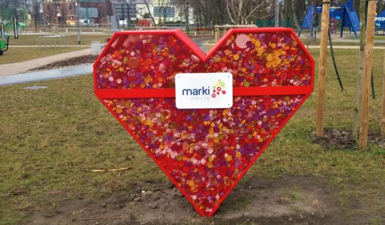 Mieszkańcy Marek wypełnili nakrętkami pojemnik w Parku Wolontariuszy