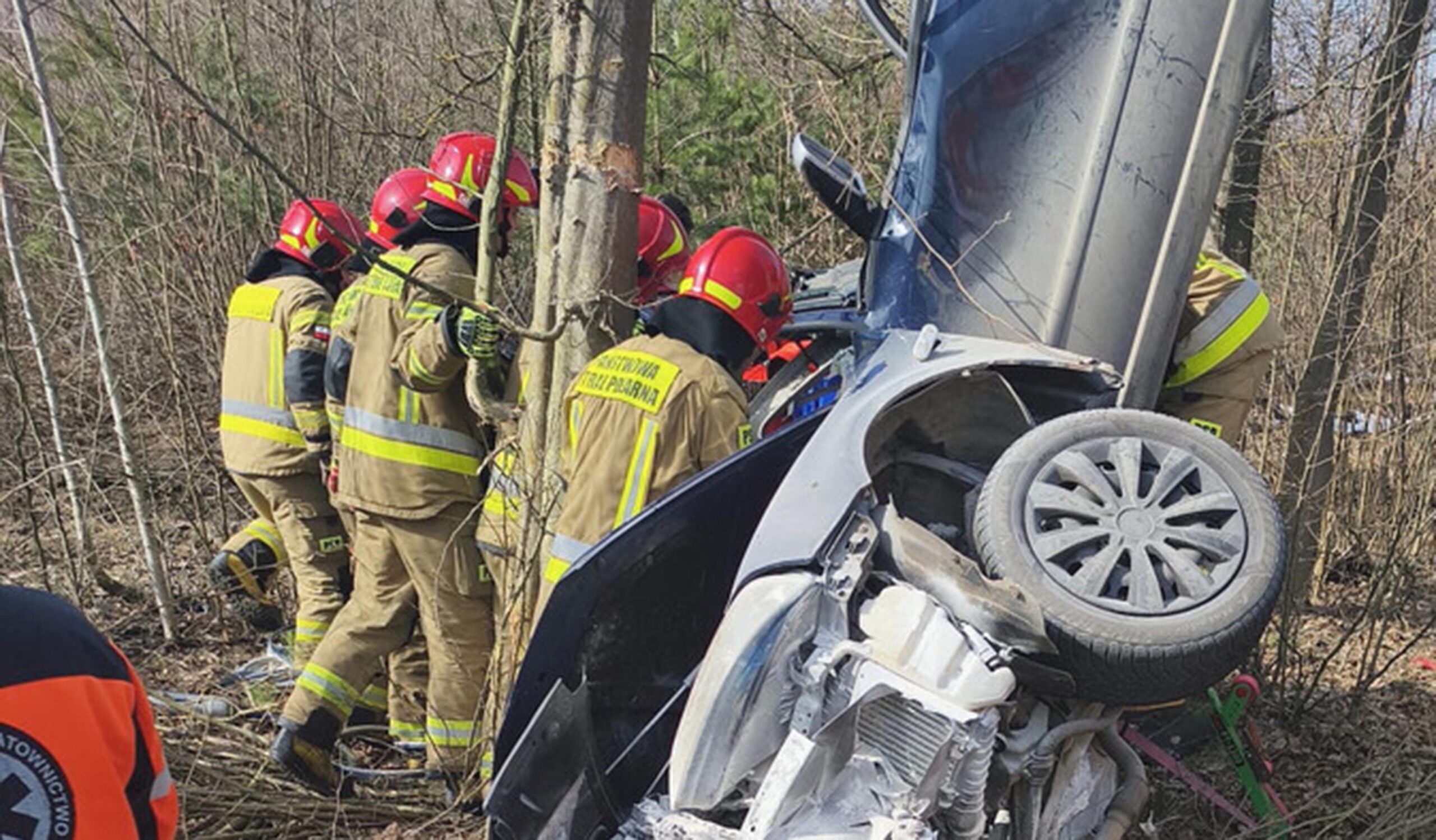 Łuk drogi, chwila nieuwagi i dramat. Auto rozbiło się o drzewo.