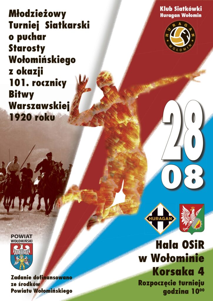 28 sierpnia odbędzie się druga edycja zmagań siatkarskich juniorów o Puchar Starosty Wołomińskiego z okazji z okazji 101. rocznicy Bitwy Warszawskiej 1920 roku. Organizatorzy – Klub Siatkówki Huragan Wołomin zapraszają miłośników siatkówki do hali Ośrodka Sportu i Rekreacji w Wołominie przy ulicy Korsaka 4.