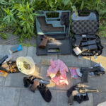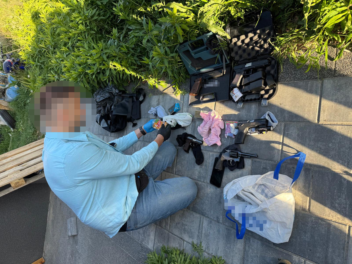 Policjanci zabezpieczyli teren jednorodzinnej willi oraz zaparkowane tam samochody, po czym bardzo skrupulatnie je przeszukali. Łącznie zabezpieczyli siedem jednostek broni palnej i 206 sztuk amunicji. Jeden z pistoletów został wcześniej skradziony na terenie warszawskiego Śródmieścia. Część z ujawnionej broni widniała w policyjnych systemach jako utracona w wyniku kradzieży, część miała usunięte numery fabryczne. Dodatkowo zabezpieczono zagłuszarki, narkotyki w postaci LSD, telefony komórkowe i inne dowody mające znaczenie w przedmiotowej sprawie.