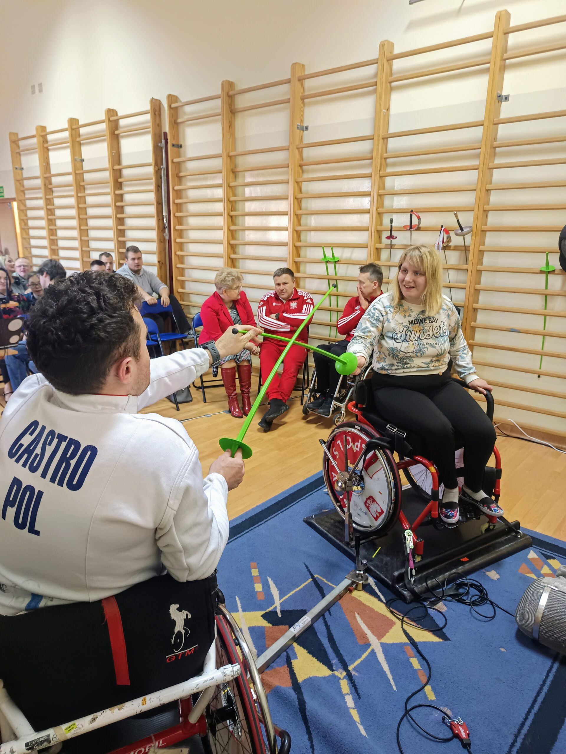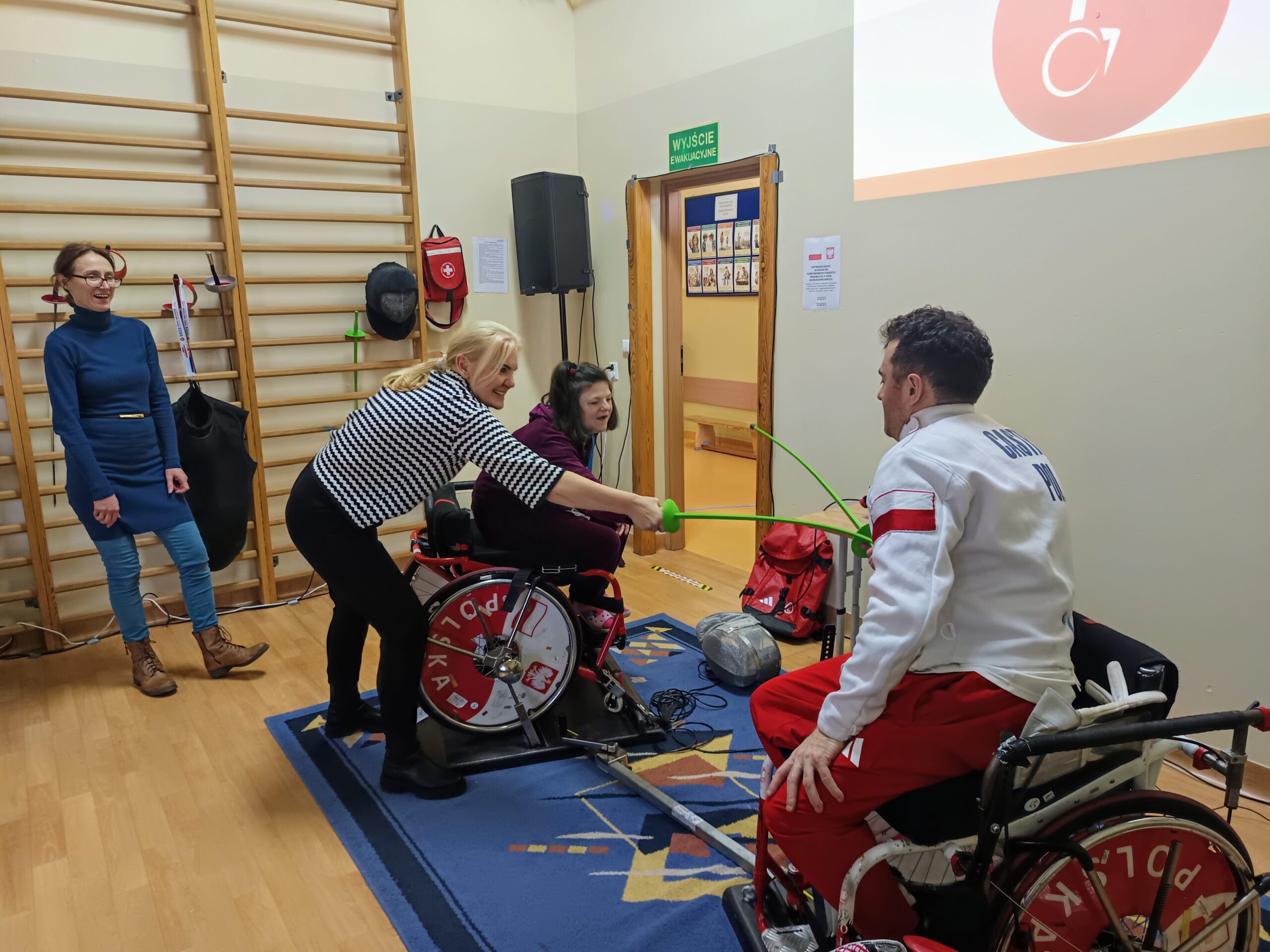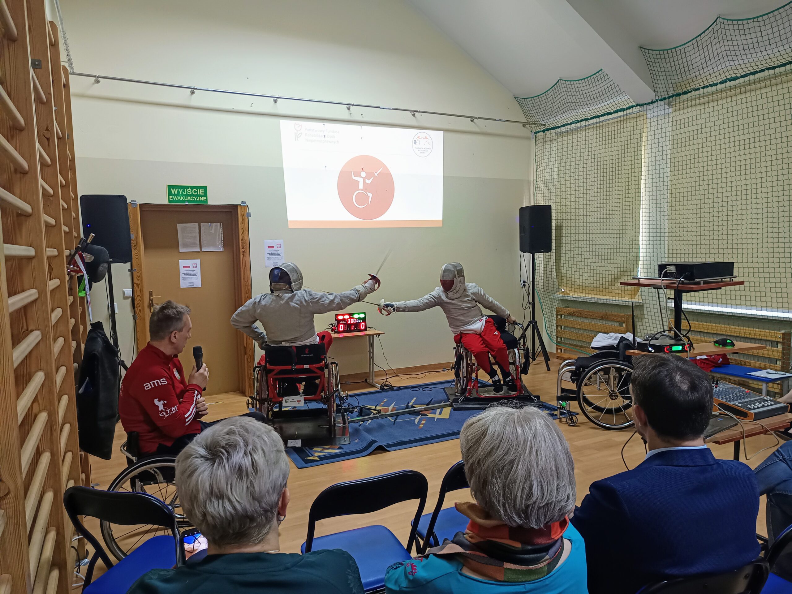 Centralnym punktem spotkania był pokaz szermierki – dyscypliny, która dla bohaterów konferencji stała się symbolem walki z przeciwnościami losu. Pod okiem profesjonalnego sędziego sportowcy przeprowadzili widowiskowy pojedynek, prezentując swoje umiejętności i wyjątkowy kunszt. Następnie zaprosili uczniów do spróbowania swoich sił w tej wymagającej, ale jednocześnie dostojnej dyscyplinie.
