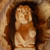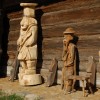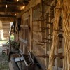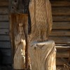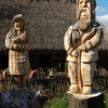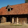 – Tu stoi stodoła wykonana metodą łupaną, z przełomu lat 80. i 90. XIX wieku – mówi – w pobliżu mamy chałupę, prawdopodobnie z początku XIX wieku, ale to potwierdzą jeszcze specjaliści. Opodal mamy spichlerz, stworzony tylko do przechowywania zboża. Przy budynkach stoją okazałe rzeźby Marka Gołaszewskiego z Marek – samouka, który sporych rozmiarów dzieła wykonuje w drewnie za pomogą piły spalinowej.