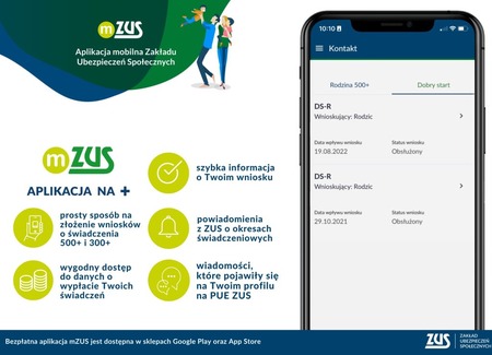 – Za pośrednictwem aplikacji mZUS rodzice nie tylko mogą złożyć wniosek o świadczenie wychowawcze 500+, 300+ z programu „Dobry Start”, żłobkowe, czy kapitał opiekuńczy. Mogą również sprawdzić, co dzieje się z wnioskiem, podejrzeć dane o wypłatach, czy napisać wiadomość do ZUS-u i odczytać odpowiedź na nią. Nawiążą również telefoniczny kontakt z infolinią ZUS, a także umówią wizytę w placówce ZUS. Aplikacja daje również możliwość, aby działać w imieniu osoby, która nadała upoważnienie do PUE ZUS – informuje Wojciech Ściwiarski, rzecznik prasowy ZUS w województwie mazowieckim.