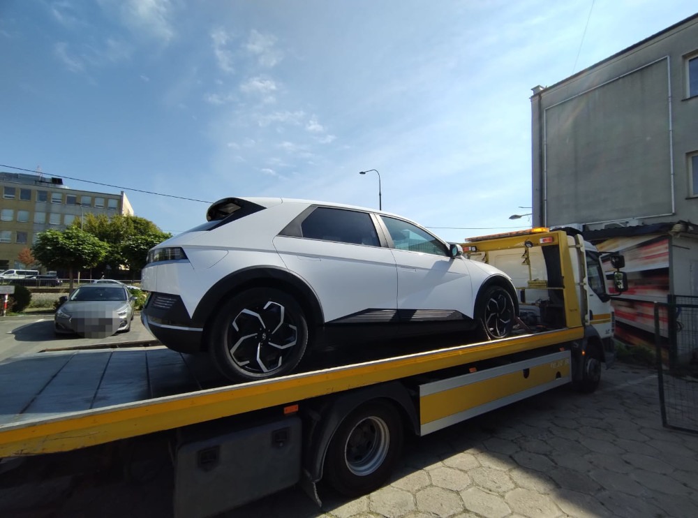 Tym razem był to komis samochodowy, a w nim skradziony, jak się okazało, w Hiszpanii, Hyundai Ioniq 5 o wartosci 115 tysięcy złotych. Policjanci po skontrolowaniu tabliczek znamionowych i pól numerycznych od razu stwierdzili ingerencję i przeróbki.