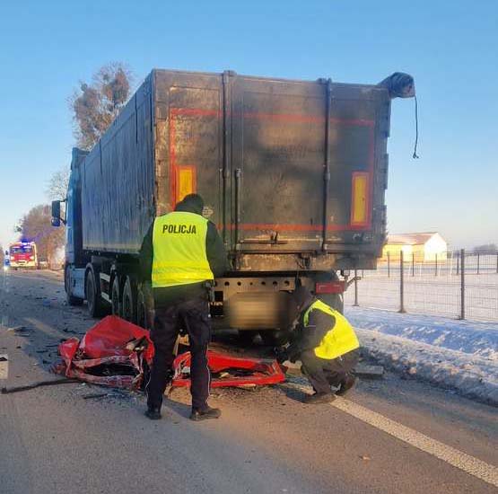 Do wypadku komunikacyjnego z udziałem zespołu pojazdów w postaci ciągnika siodłowego z naczepą oraz samochodu marki Opel doszło w dniu 2 lutego 2026r. o godz. 6:25 w miejscowości Chyliny, gm. Szelków na drodze powiatowej. Na skutek wypadku śmierć na miejscu zdarzenia poniosły 3 osoby. Byli to pasażerowie samochodu Opel, kobiety w wieku 40 i 65 lat oraz mężczyzna w wieku 49 lat, mieszkańcy powiatu makowskiego. Samochód marki Opel realizował przewóz medyczny osób do szpitala w Makowie Mazowieckim. Bus przystosowanym do przewozu osób niepełnosprawnych, a pacjenci jechali na dializy. Wstępnie ustalono, że na prostym odcinku drogi samochód Opel uderzył w lewą tylną część naczepy samochodu ciężarowego. Ciężarówka była zaparkowana częściowo na utwardzonym prawym poboczu, a częściowo na prawym pasie jezdni. Następnie odbił się od naczepy, zjechał na prawe pobocze i uderzył w drzewo. Kierowca samochodu Opel z obrażeniami ciała został przewieziony do szpitala. Na chwilę obecną nie są znane rokowania co do jego stanu zdrowia. Kierowca zespołu pojazdów nie był obecny w chwili zdarzenia. Około godziny 4.00 z uwagi na awarię pojazdu pozostawił go na drodze i udał się do domu. Ze wstępnych ustaleń wynika, że stojąca na drodze naczepa nie była prawidłowo oznaczona trójkątem ostrzegawczym. W chwili wykonywania czynności na miejscu zdarzenia kierowcy obydwu pojazdów byli trzeźwi.