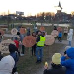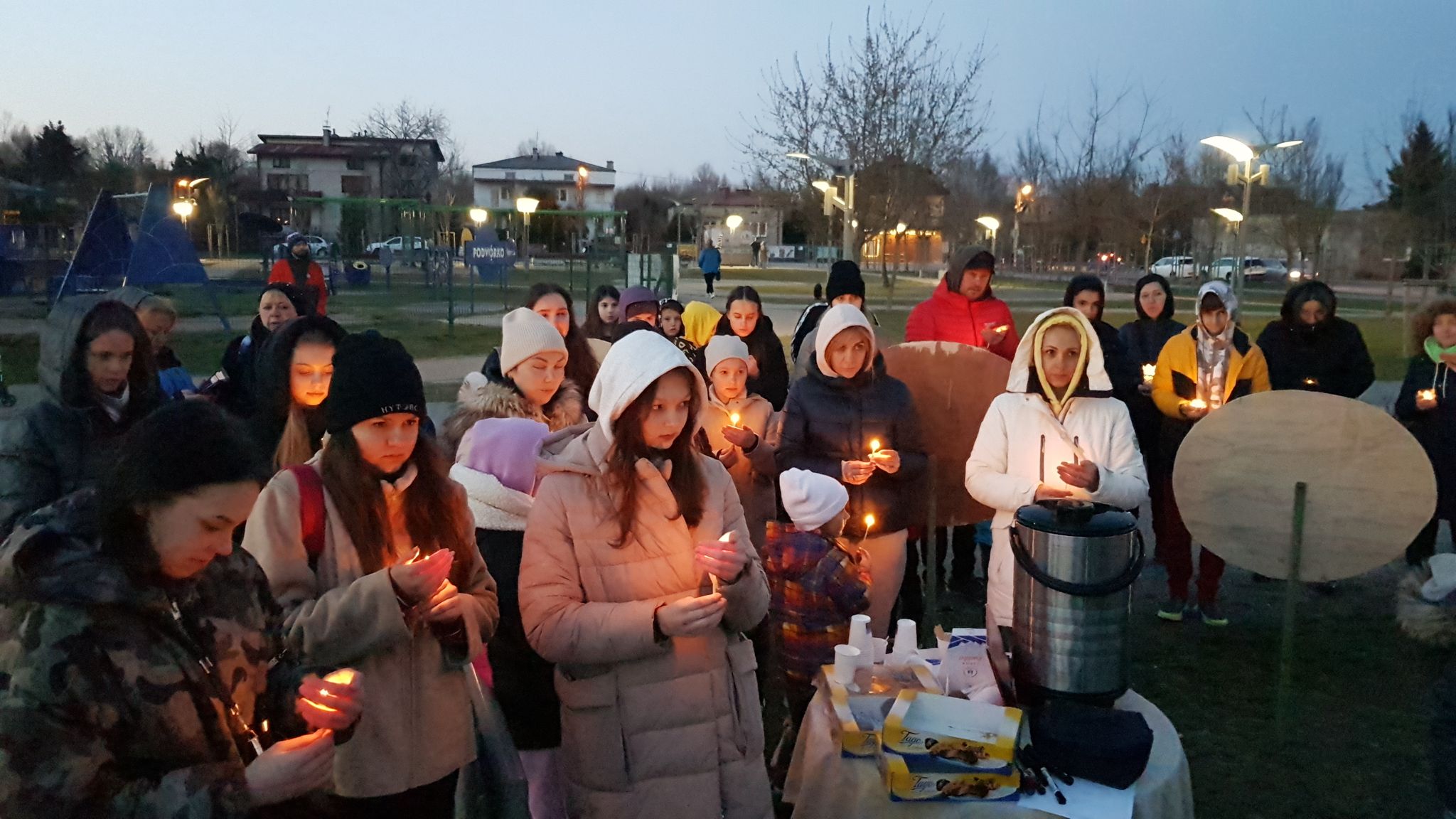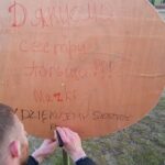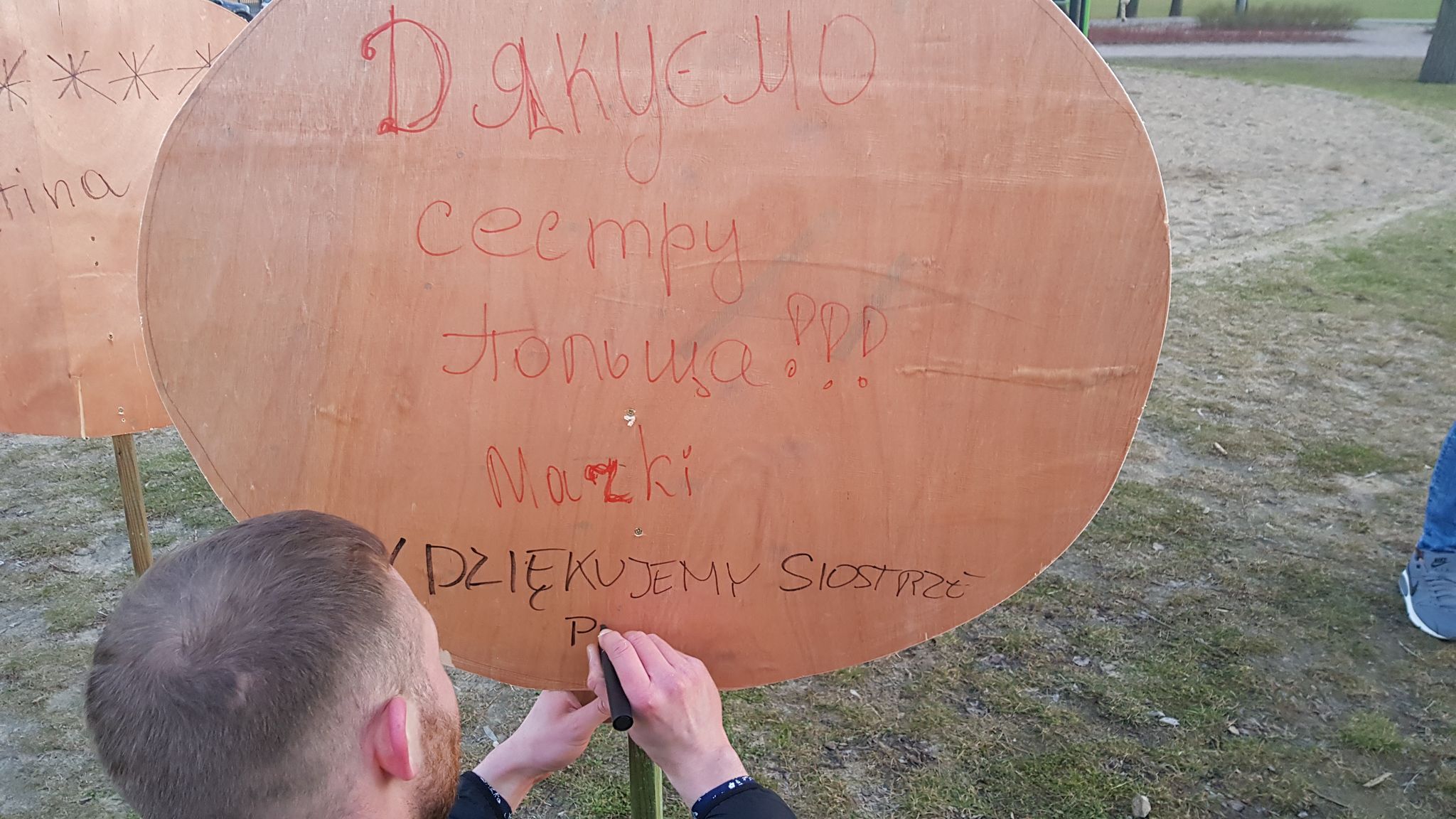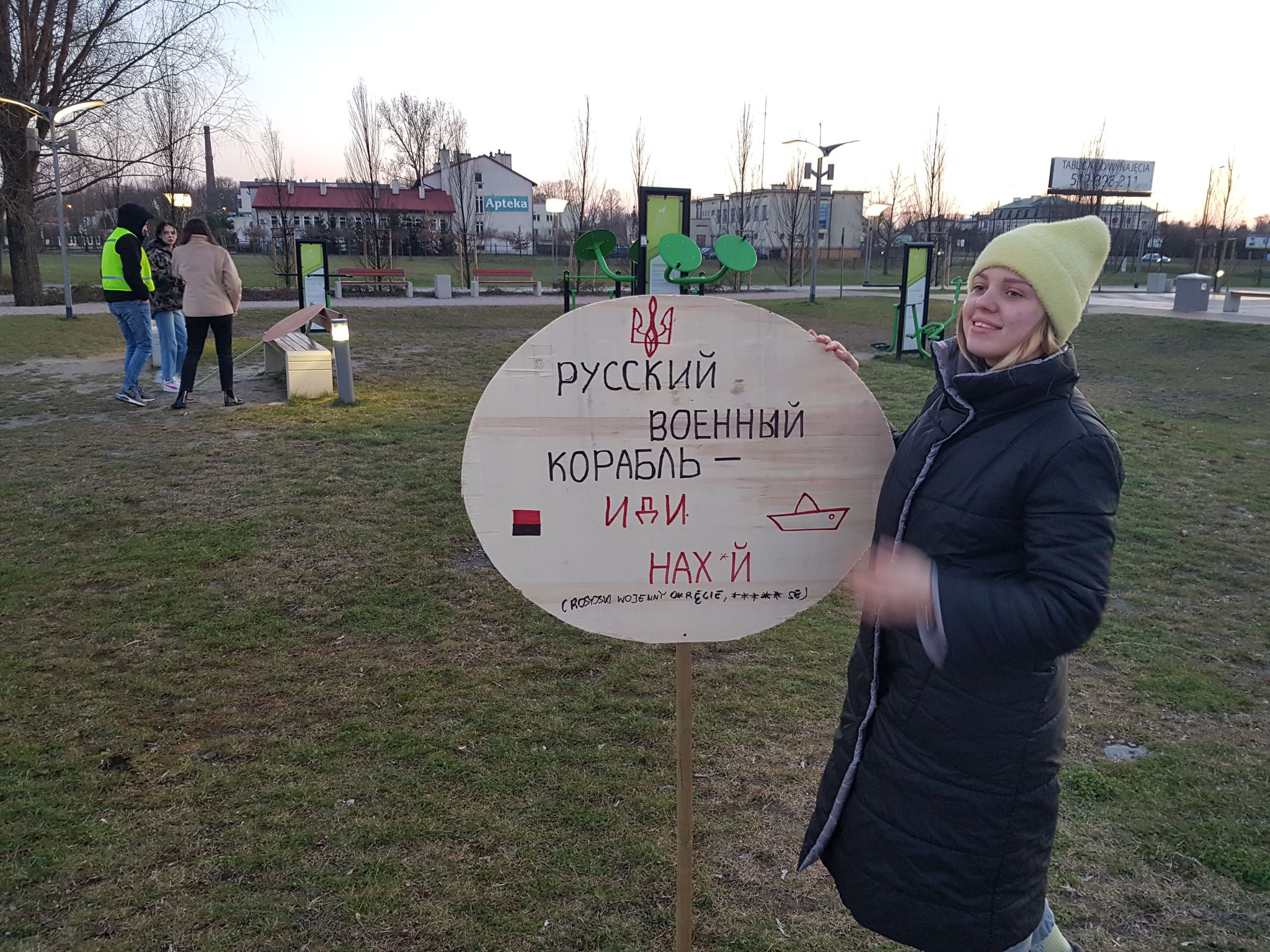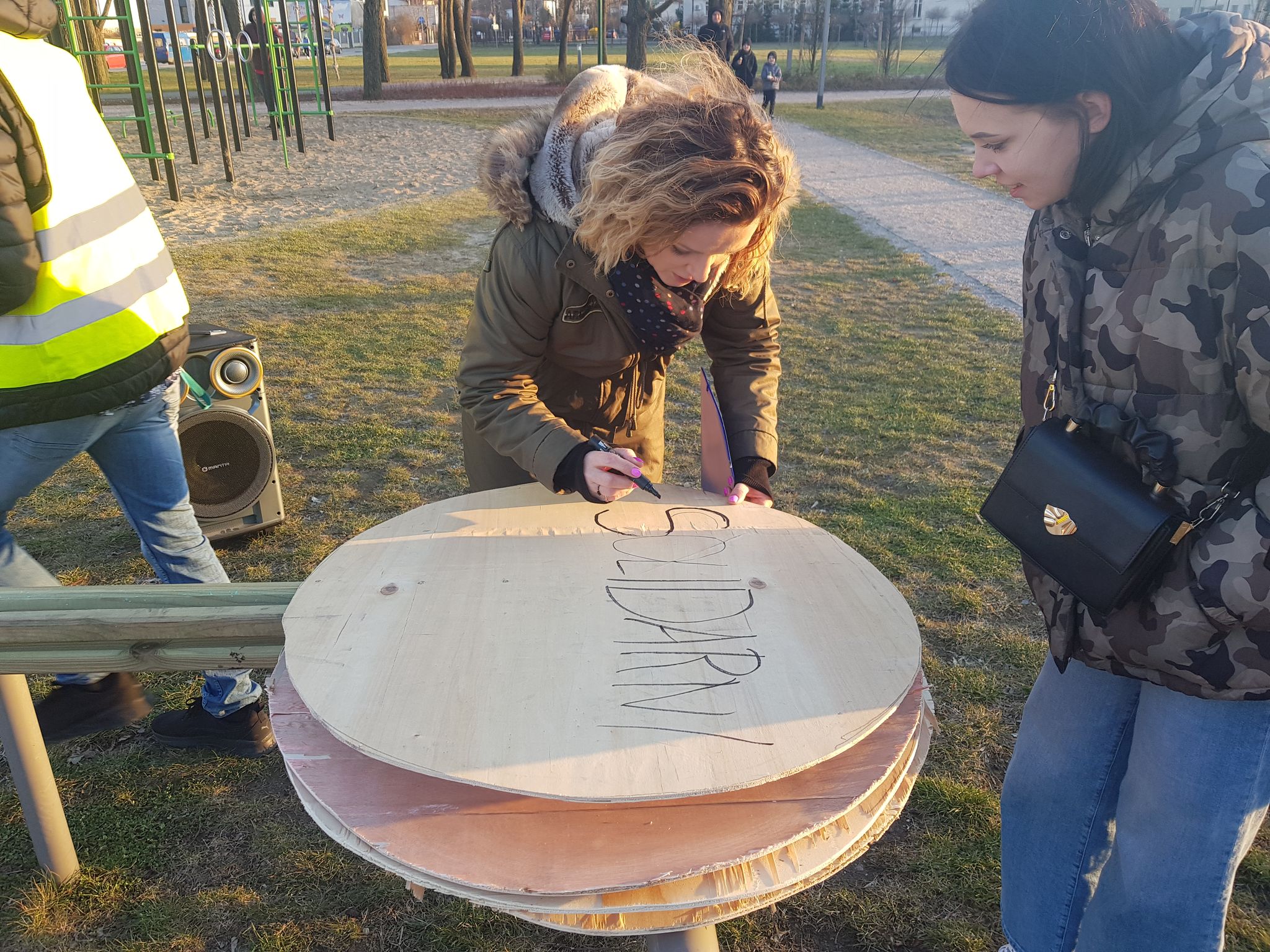 – Pogoda pod wieczór była jak na zamówienie. Jedynym wyjątkiem była niska temperatura, ale i z tym sobie poradziliśmy. Blisko 40 osób biorących udział w evencie miało możliwość ogrzania się gorącą herbatą. Gorętsze od najbardziej gorącej herbaty były jednak serca uczestników. Wykonaliśmy łącznie 19 drewnianych szyldów, a efekty naszej wspólnej pracy możecie obejrzeć w Parku Wolontariuszy. Udało nam się sprawić, że na twarzach naszych ukraińskich przyjaciół zagościł uśmiech. Każdy miał okazję sprzeciwić się wojnie i działaniom mordercy Putina na swój sposób i swoimi słowami. Na szyldach znalazły się też słowa podziękowania za polską ofiarność i zaangażowanie Polaków w pomoc Ukraińcom. Ostatnia część happeningu była bardzo wzruszająca. Po apelu przygotowanym przez Magdę Burlikowską, oddaliśmy przy blasku świec cześć bestialsko pomordowanym cywilom i żołnierzom, którzy polegli w obronie swojej ojczyzny. Następnie wspólnie zaśpiewaliśmy przepiękną, ukraińską pieśń ludową i hymny Ukrainy i Polski. Nie zabrakło uścisków, łez wzruszenia, uśmiechów i pamiątkowego zdjęcia. Bardzo dziękuję wszystkim, którzy organizacyjnie przyczynili się do sukcesu happeningu, czyli Magdzie Burlikowskiej odpowiedzialnej za część wokalno-artystyczną, Radnemu Miasta Marki Tomaszowi Paciorkowi, z którym przygotowywaliśmy wcześniej nasze drewniane szyldy a także który odpowiedzialny był za gorącą herbatę oraz przemyskiemu oddziałowi Związku Ukraińców w Polsce, którego członkowie pomogli w tłumaczeniu haseł i zaproszenia. Wielkie podziękowania należą się Dimie, który przyjechał z Torunia specjalnie po to, żeby z nami być i pomóc w przełamywaniu ewentualnych barier językowych. Dziękuję wszystkim Polakom i Ukraińcom, którzy byli z nami wczoraj. Niech żyje wolna Ukraina! – podsumował wydarzenie jeden z organizatorów Łukasz Krzemiński