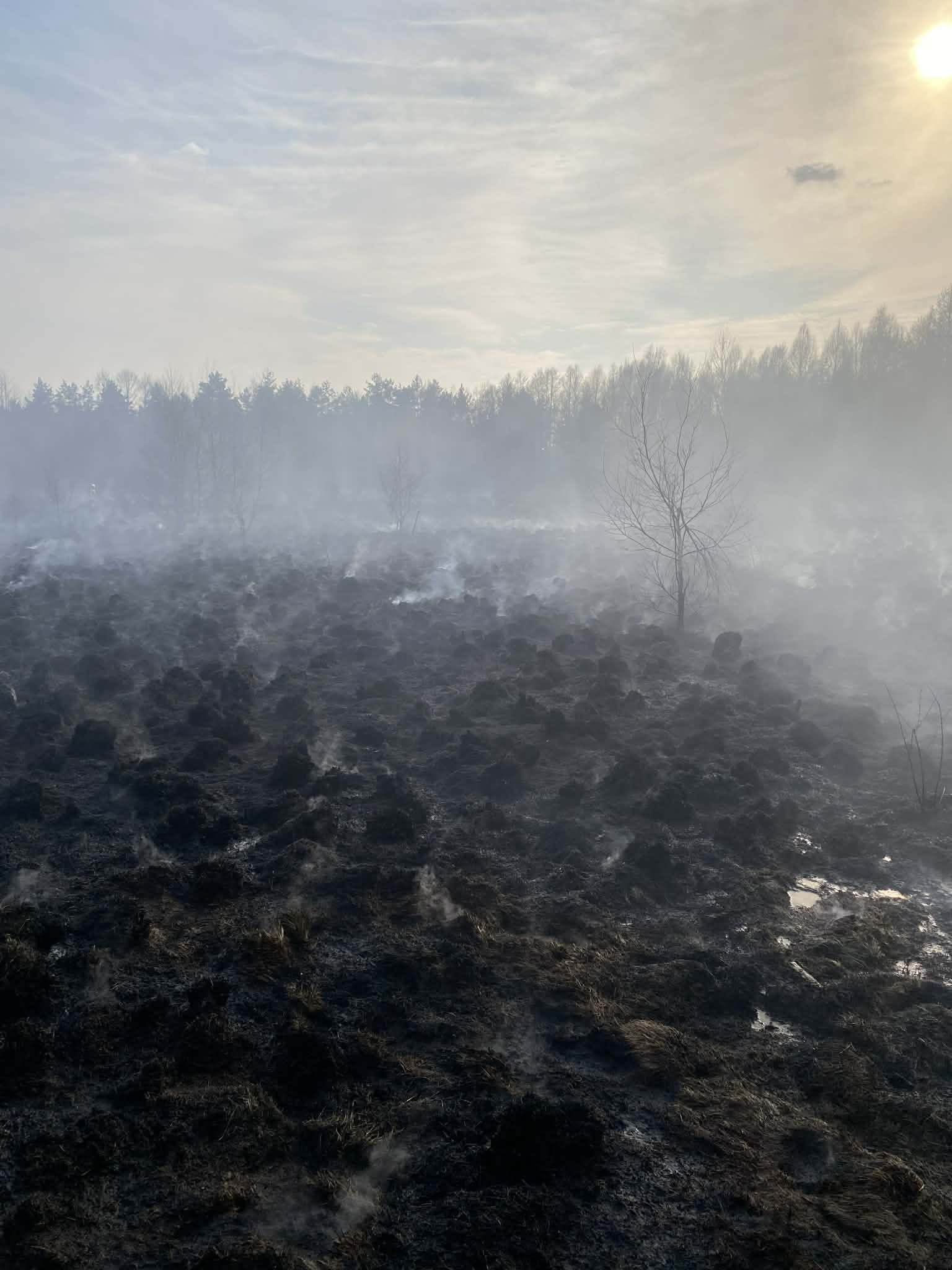 Spalona ziemia, kłęby dymu i realne zagrożenie – pożar traw i nieużytków w Miąsem