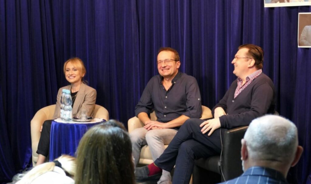 Wraz z żoną Moniką, opowiedzieli o wydanej książce ?Jak zostałem Prezesem?, początkach swojej znajomości, o tym jak radzili sobie podczas pandemii oraz jakie mają plany zawodowe. Już na początku spotkania okazało się, że rodzice Pana Roberta pochodzą z terenów znajdujących się nieopodal naszej gminy. Pani Monika opowiedziała także o książce swojego autorstwa pt. ?Ukrainki?, w której przedstawiła historie kilku bohaterek pokazujące nam, Polakom, jak jesteśmy widziani oczami kobiet zajmujących się naszymi gospodarstwami domowymi. Pani Monika zdradziła także, czy życie z jej mężem to ciągły kabaret i jaki jest, gdy gasną światła reflektorów.