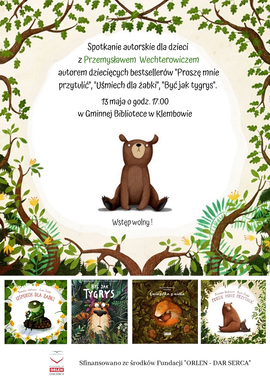 Klembowska biblioteka włącza się do akcji, poprzez organizację spotkania autorskiego z Przemysławem Wechterowiczem, na które serdecznie zapraszamy wszystkie dzieci!