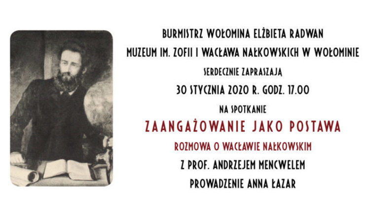Muzeum Zofii i Wacława Nałkowskich zaprasza 30 stycznia 2020 roku o godzinie 17.00 na spotkanie z prof. Andrzejem Mencwelem ?Zaangażowanie jako postawa. Rozmowa o Wacławie Nałkowskim? Prowadzenie Anna Łazar