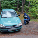 Po kilkunastu godzinach policjanci znaleźli pojazd wykorzystany podczas napadu. Sprawcy porzucili go na terenie leśnym w Otwocku. Na miejscu pracował technik oraz policyjny pies tropiący.
