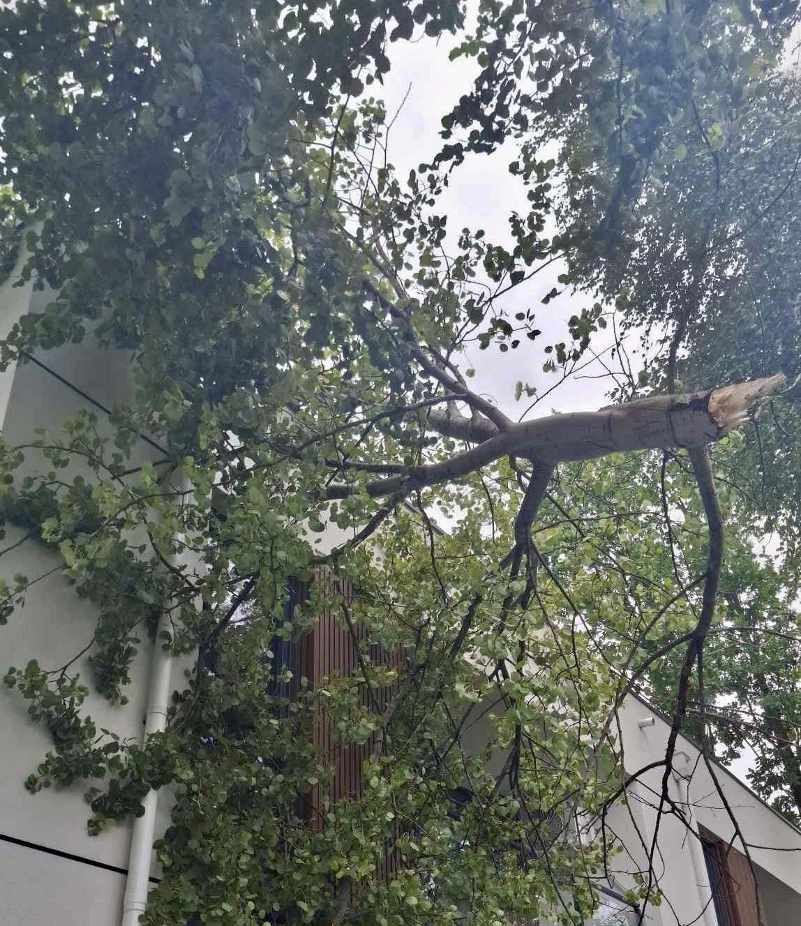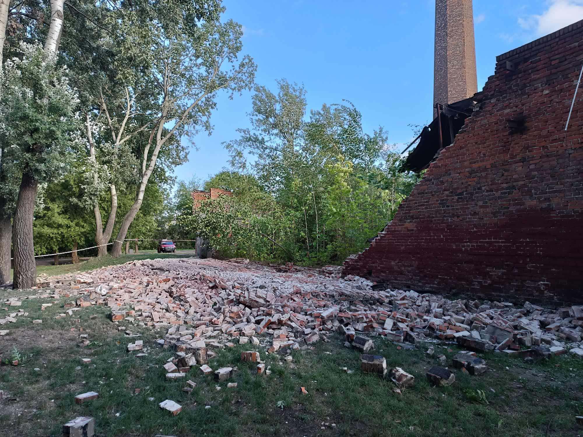 Bardzo ucierpieli mieszkańcy Marek, gdzie wiatr poprzewracał drzewa na dachy, a nawet… połamał mur przy ul. Braci Briggsów.