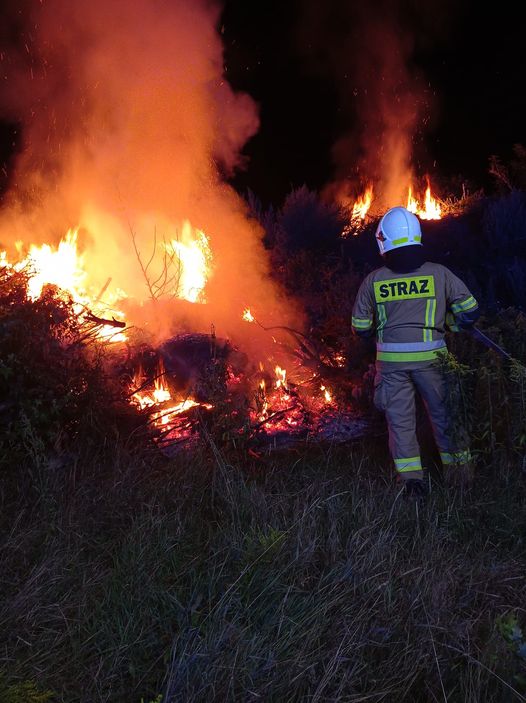Pożar stert gałęzi przy ul. Granicznej w Wołominie ugasili strażacy z OSP Wołomin
