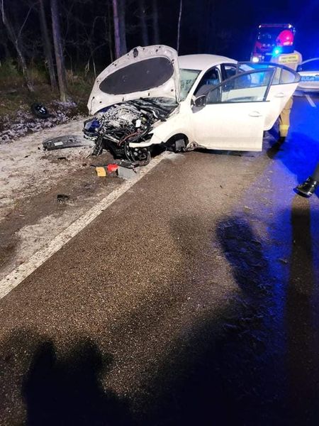 Strażacy z PSP Wołomin wraz z OSP Jadów brali udział w działaniach ratowniczych na drodze powiatowej Jadów-Sulejów.