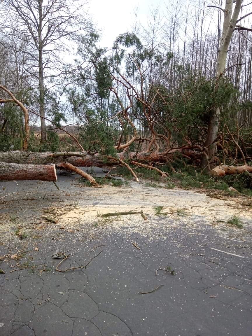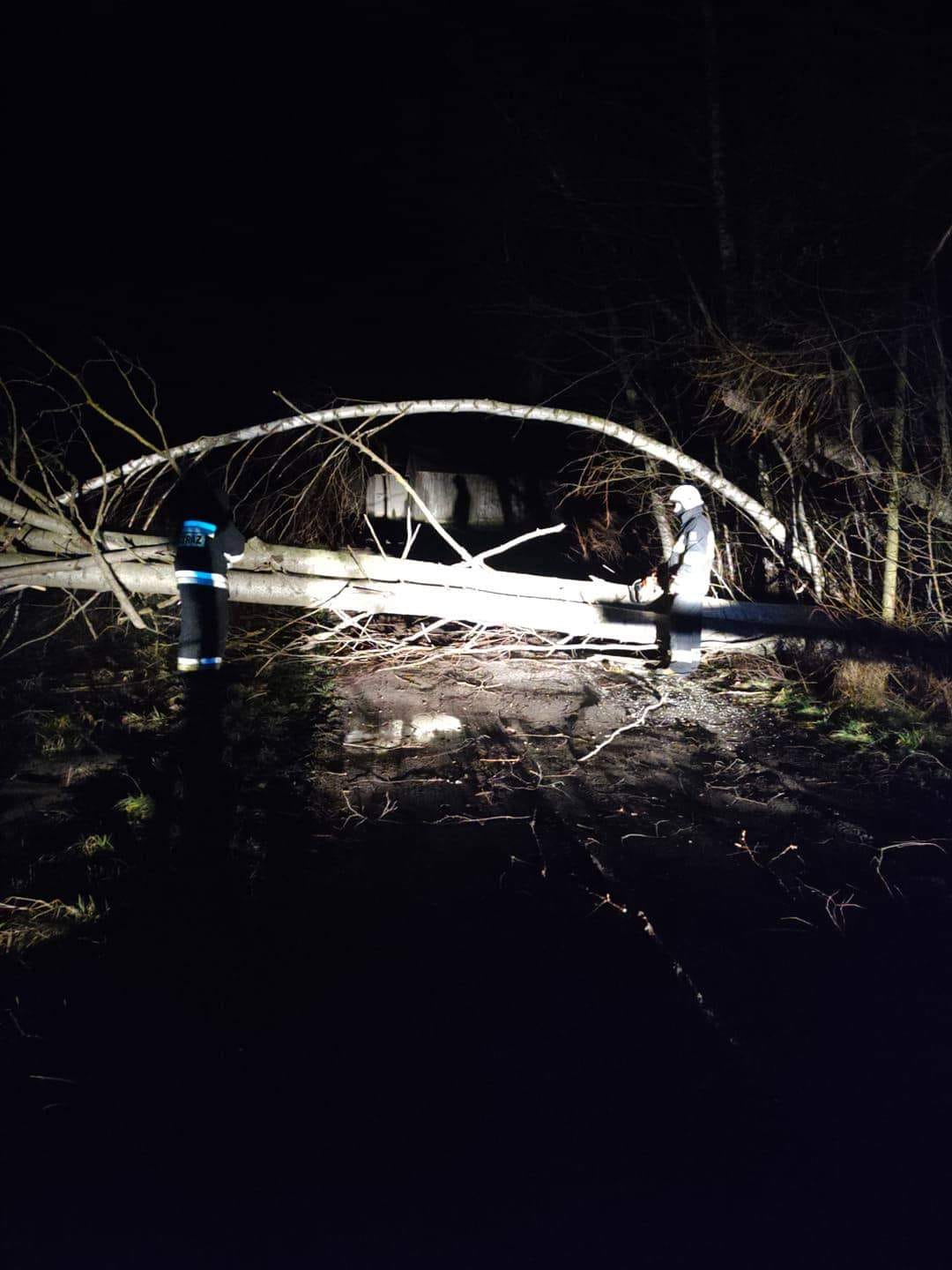 17 i 18 lutego strażacy z OSP Poświętne usunęli powalone na drogi drzewa.