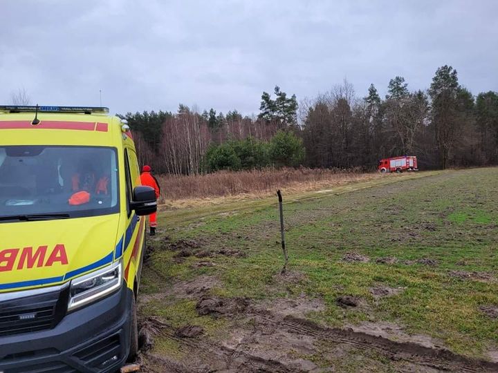 Dzięki pomocy jednostki OSP z Jadowa udało się wyciągnąć z błota karetkę pogotowania ratunkowego.
