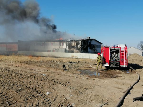 Strażacy z OSP i PSP ugasili pożar hali magazynowej oraz przyległych nieużytków.