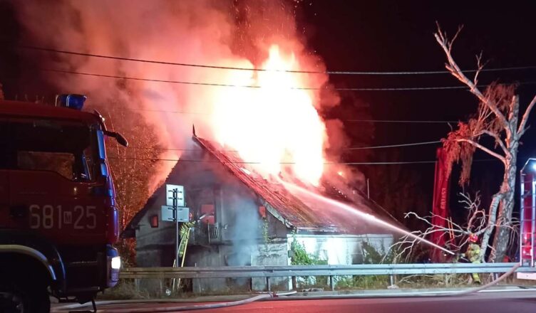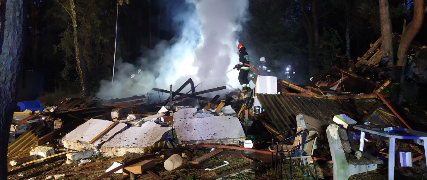 Około godziny 19 doszło do pożaru budynku mieszkalnego w miejscowości Pasek, gm. Klembów. W wyniku zdarzenia jedna osoba została poszkodowana. Na miejscu zdarzenia Kierujący Działaniem Ratowniczym potwierdził, że prawdopodobnie w wyniku wybuchu, całkowitemu zniszczeniu uległ domek letniskowy, dodatkowo teren gruzowiska objęty był pożarem. Działania straży polegały na zabezpieczeniu miejsca zdarzenia i udzieleniu kwalifikowanej pierwszej pomocy poszkodowanemu mężczyźnie do czasu przekazania ZRM. Poszkodowany śmigłowcem LPR został przetransportowany do szpitala. Po ugaszeniu ognia, przeszukano gruzowisko, w celu wykluczenia obecności innych osób poszkodowanych. W działaniach brały udział zastępy z JRG Wołomin, Posterunek Tłuszcz, OSP Dobczyn, OSP Klembów, OSP Krusze, OSP Roszczep, 2x ZRM, LPR, Policja – poinformował asp. Krzysztof Sobczak. Zdjęcie z miejsca wypadku wykonał asp. Mateusz Wólczyński