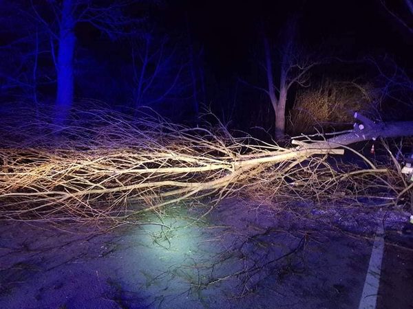 Nadgryzione przez bobry i powalone na drogę drzewo w miejscowości Borzymy usunęli strażacy z OSP Jadów. Na czas prowadzenia działań droga była całkowicie zablokowana.
