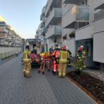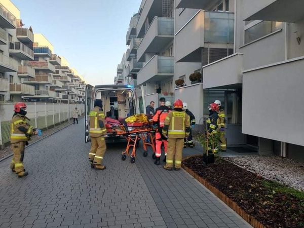 Strażacy z OSP Ząbki udzielili wsparli działania zespołu ratownictwa medycznego pomagając w zaniesieniu pacjenta do karetki pogotowia ratunkowego.