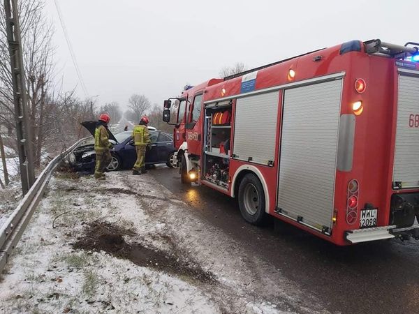 Do poważnego wypadku doszło na ul. Geodetów w Wołominie. Samochód osobowy uderzył w drzewo.