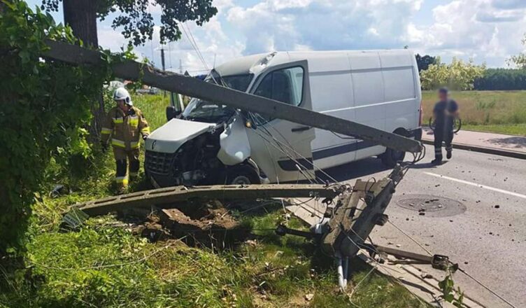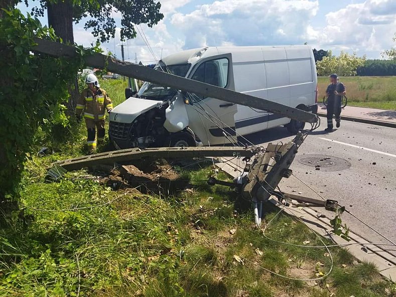 Tego samego dnia strażacy strażacy zostali zadysponowani do Klembowa, gdzie samochód dostawczy uderzył w słup.