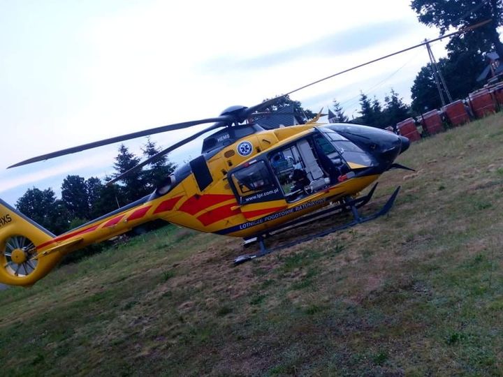 Lądowanie śmigłowca Lotniczego Pogotowia Ratunkowego na ul. Wyszyńskiego w miejscowości Cięciwa zabezpieczała 24 czerwca OSP Wołomin.