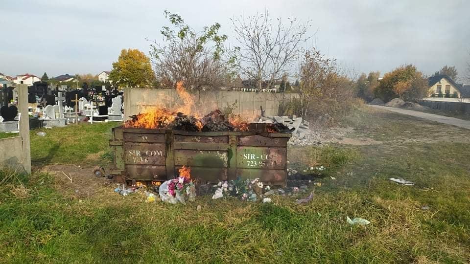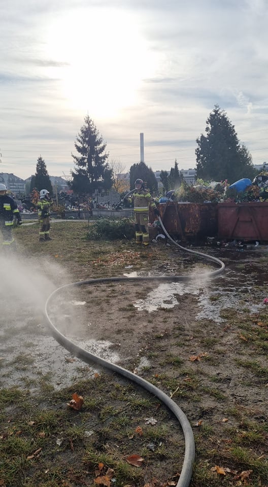 Pożaru śmieci na terenie cmentarza komunalnego przy ul. Piłsudskiego w Ząbkach ugasili strażacy z OSP