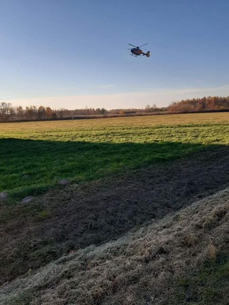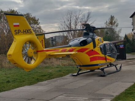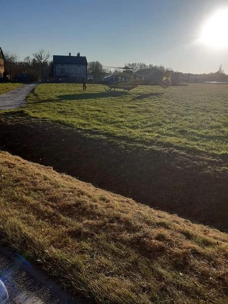 Jedna z pensjonariuszek domu pomocy społecznej została przetransportowana śmigłowcem do szpitala w Wołominie. Lądowanie śmigłowca LPR zabezpieczali druhowie z OSP Ząbki.