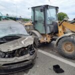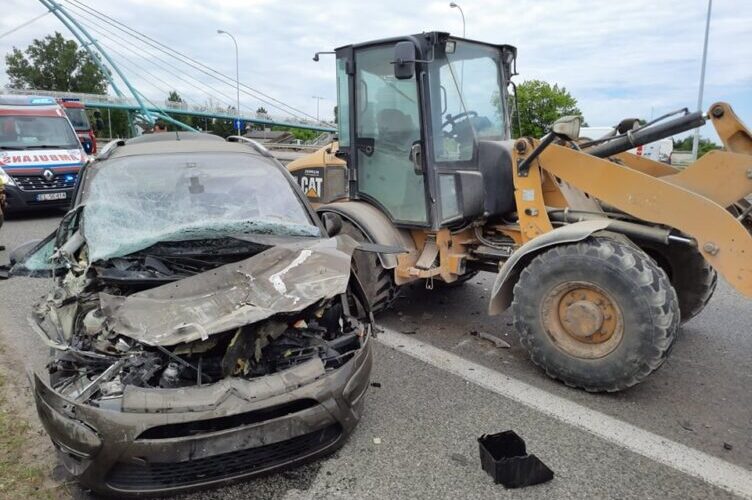 Na drodze DW 629 samochód osobowy wjechał w koparko-ładowarkę. W wyniku wypadku jedna osoba została poszkodowana.W akcji ratowniczej uczestniczył SiS, strażacy z JRG Wołomin GBA 21, druhowie z OSP Radzymin oraz Policja i ZRM