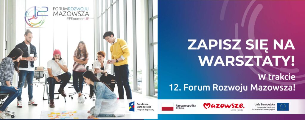 Podczas Forum Rozwoju Mazowsza, które odbędzie się już 6 i 7 grudnia na Stadionie Legii, zapraszamy do specjalnej strefy warsztatowej. Interaktywne wydarzenia, prezentacje i gry zaangażują uczestników do wspólnych aktywnosci. W świat kompetencji przyszłości wprowadzi uczestników Avatar, dowiemy się skąd brać energię, a etiuda artystyczna przybliży wartości Unii Europejskiej. Na wszystkie warsztaty jest wstęp wolny. Już teraz zachęcamy na rejestracji online. Organizatorem wydarzenia jest Mazowiecka Jednostka Wdrażania Programów Unijnych. Patronat honorowy nad Forum objęli Marszałek Województwa Mazowieckiego, Ministerstwo Funduszy i Polityki Regionalnej oraz Przedstawicielstwo Komisji Europejskiej w Polsce.