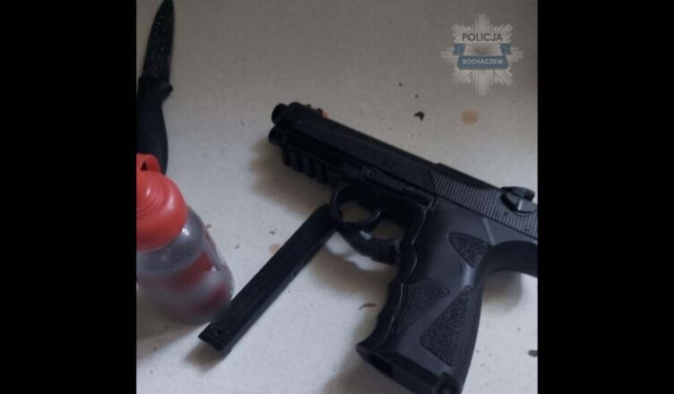 Sochaczewscy policjanci szli po nitce do kłębka. Dzięki temu dotarli do Skierniewic, gdzie mieszka mężczyzna podejrzany o popełnienie przestępstw. Wczoraj rano policjanci referatu operacyjno-rozpoznawczego zapukali do jego drzwi. W czasie przeszukania zabezpieczono wiatrówkę (replikę krótkiej broni) i opakowanie ze śrutem.